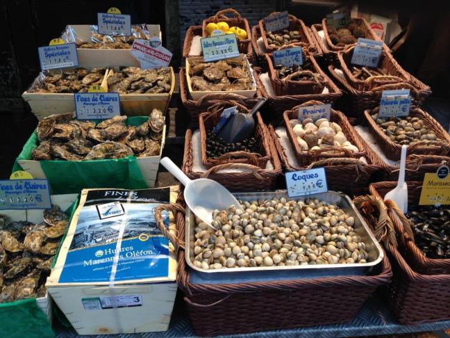 Demos sequência ao dia caminhando alguns metros até chegarmos ao início da rua, diante de várias lojas peculiares, entre queijos e vinhos, e mercadinhos oferecendo verduras, frutas (por 1,50E compra-se um punhado de Framboesas), peixes, toda sorte de frutos do mar, lojas de perfumes (como L´Occitane) além de restaurantes e cafés tradicionais. O registro fotográfico desses produtos é uma verdadeira isca para o paladar! Vale a pena comprar também frutas se tiver interesse em experimentar algo novo ou mesmo para curtir durante o passeio.