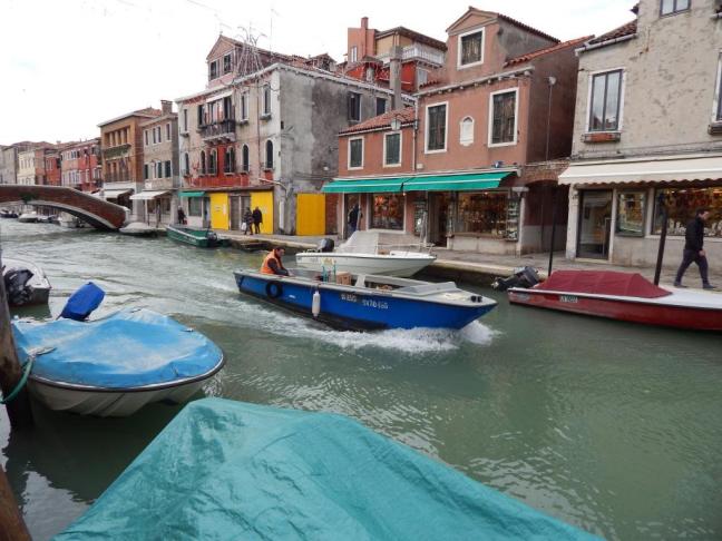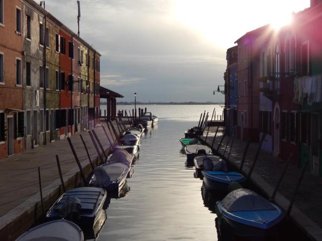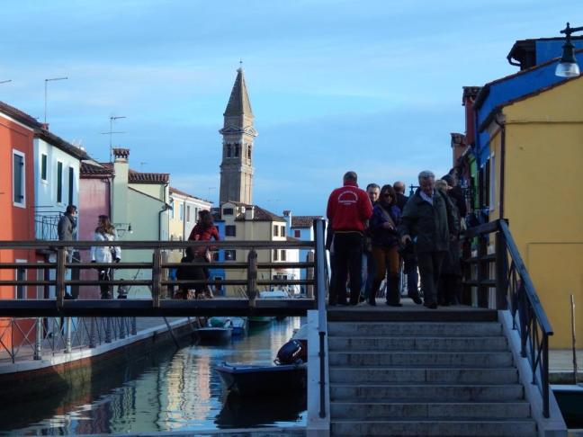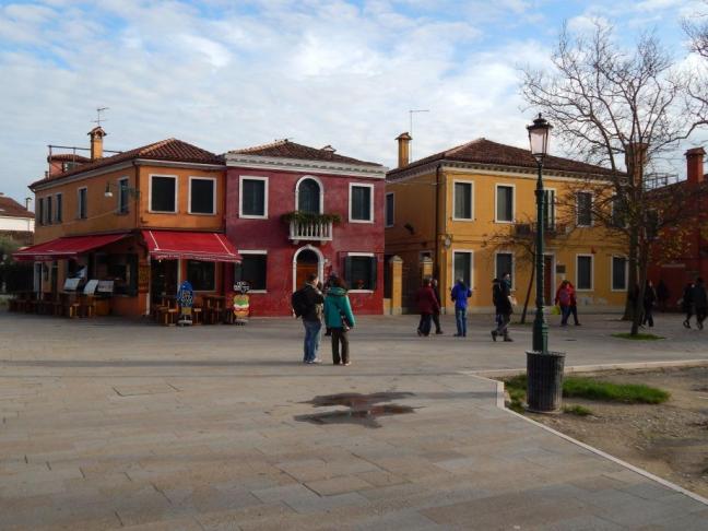Partimos para Burano, e constatamos que a ilha tem aspecto muito alegre e colorido, casas bem conservadas, embora tenhamos percebido, talvez mais acentuadamente, a solidão do lugar. Muitas das construções ostentavam anúncios de aluga-se, e algumas ruas estavam desertas, chamando atenção os pequenos barcos e lanchas estacionados em fila no curso das águas que entrecortam a cidadezinha. Na hora do almoço, comemos pizza em uma pequena lanchonete.